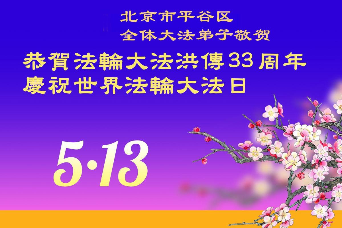 普天同庆,佛恩浩荡,弟子定不负使命圆满随师还! 北京市朝阳区一学法小组大法弟子敬上 北京市平谷区全体大法弟子恭贺法轮大法洪传33周年!庆祝世界法轮大法日!