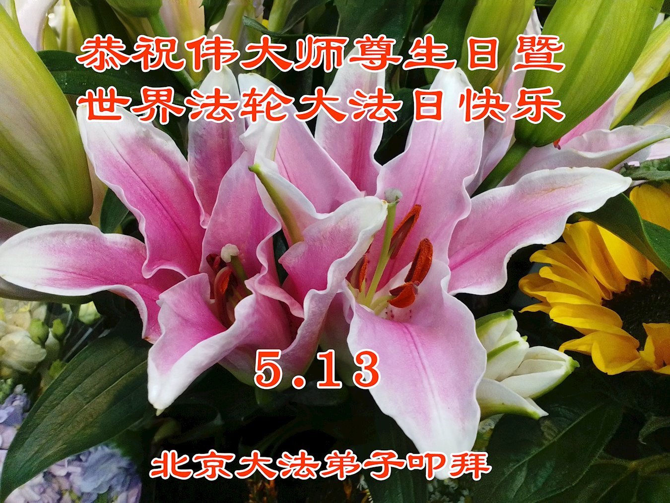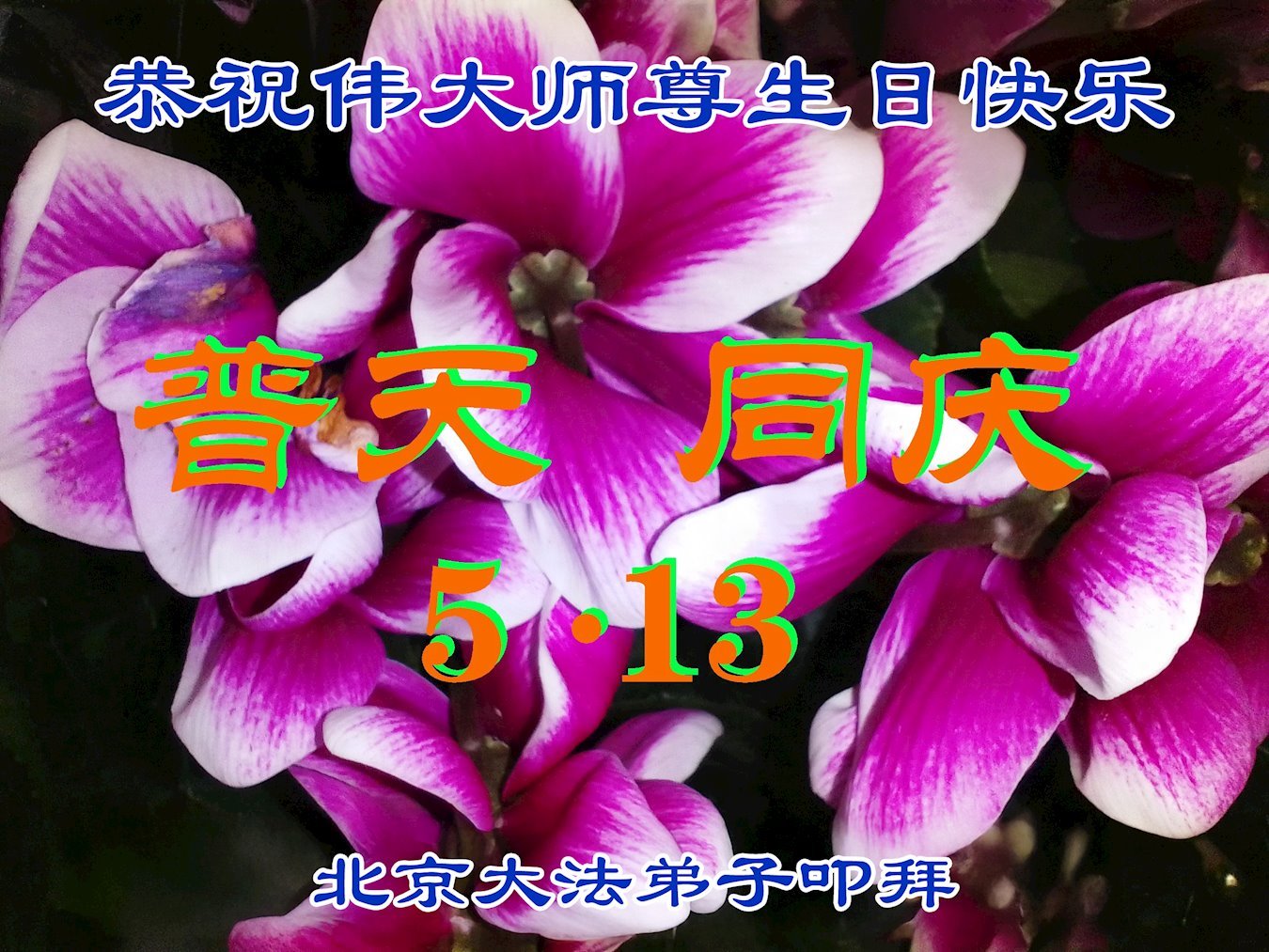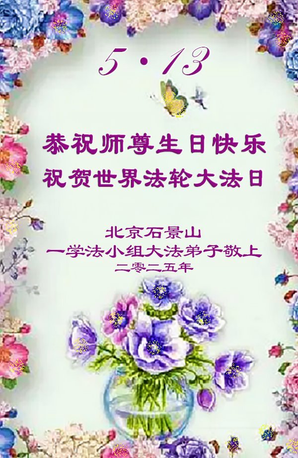 恭贺5.13世界法轮大法日!恭祝师尊生日快乐! 北京市海淀区一大法弟子敬上 2025年4月14日 北京市一大法弟子恭贺世界法轮大法日暨师父生日快乐!
