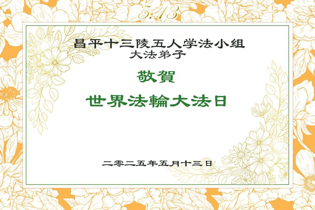 北京市海淀区一大法弟子恭贺5.13世界法轮大法日!