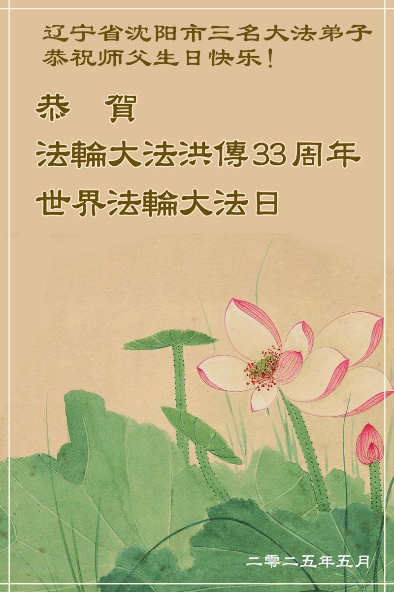 恭祝师尊生日快乐!恭贺世界法轮大法日! 辽宁省沈阳市大东区七名大法弟子敬上 辽宁省沈阳市大东区九名大法弟子恭祝师尊生日快乐!恭贺世界法轮大法日!