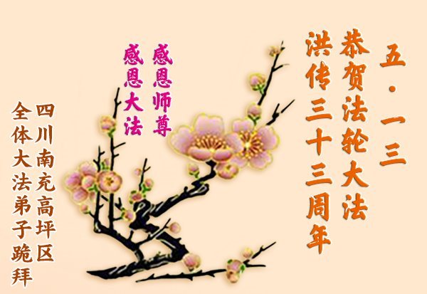 【明慧网二零二五年五月九日】 四川南充高坪区全体大法弟子恭贺大法洪传三十三周年暨师父华诞!