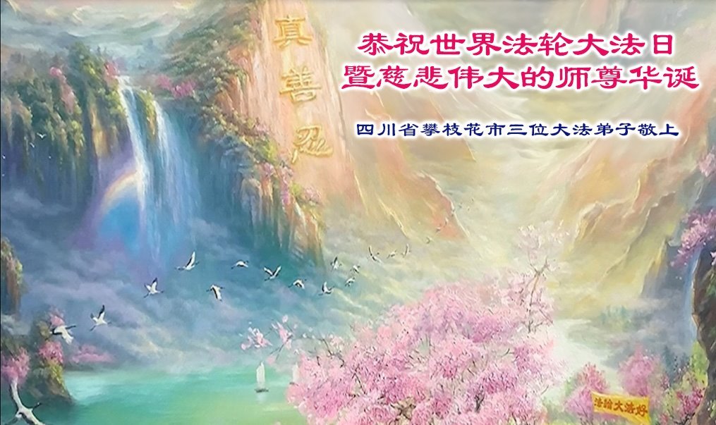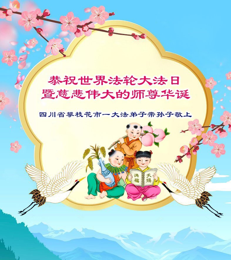 四川省攀枝花市一大法弟子代全家恭贺世界法轮大法日暨敬祝师尊华诞!