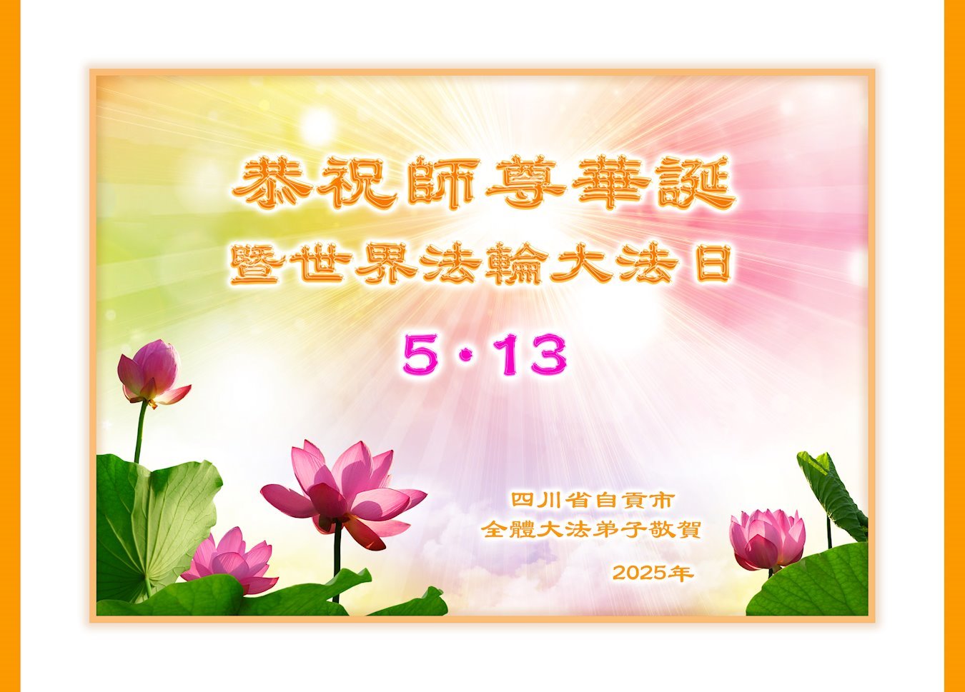 2025年5月13日世界法轮大法日快到了,也是师父生日。首先敬祝师父生日快乐!在这5.13的日子里,弟子高兴法轮大法洪传世界,使全世界的人都在受益。弟子一定精進实修,跟师尊回家。 四川省一大法弟子敬上 二零二五年五月四日 四川省资阳市一学法小组大法弟子恭贺世界法轮大法日!恭祝师尊华诞!