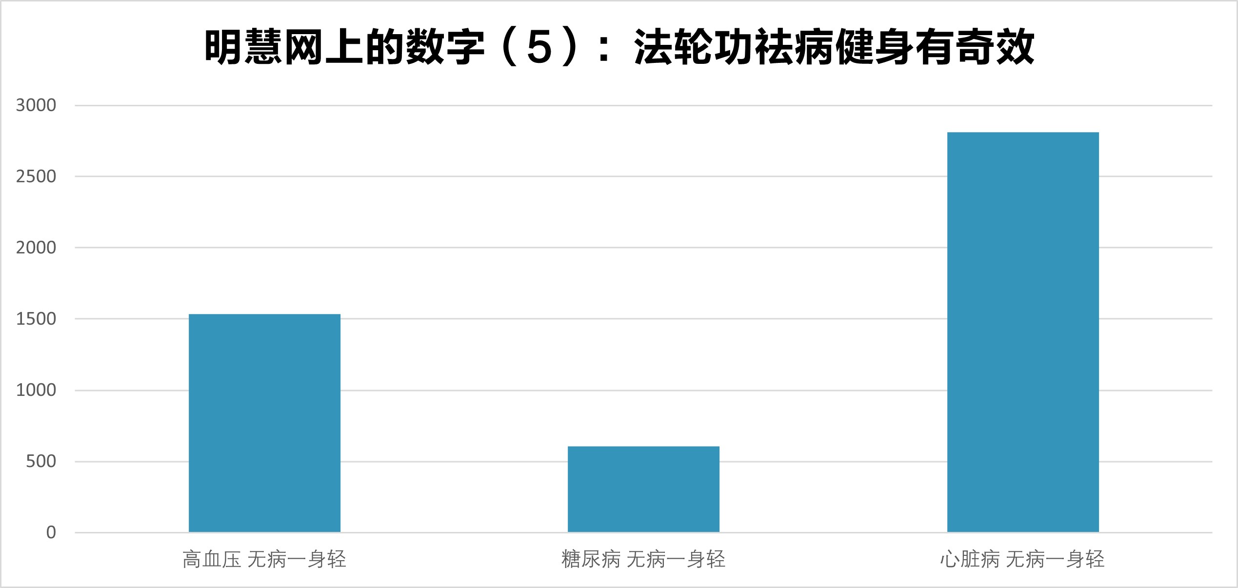 图5:包含修炼前患有高血压、糖尿病、心脏病,修炼后变得无病一身轻的文章篇数 |