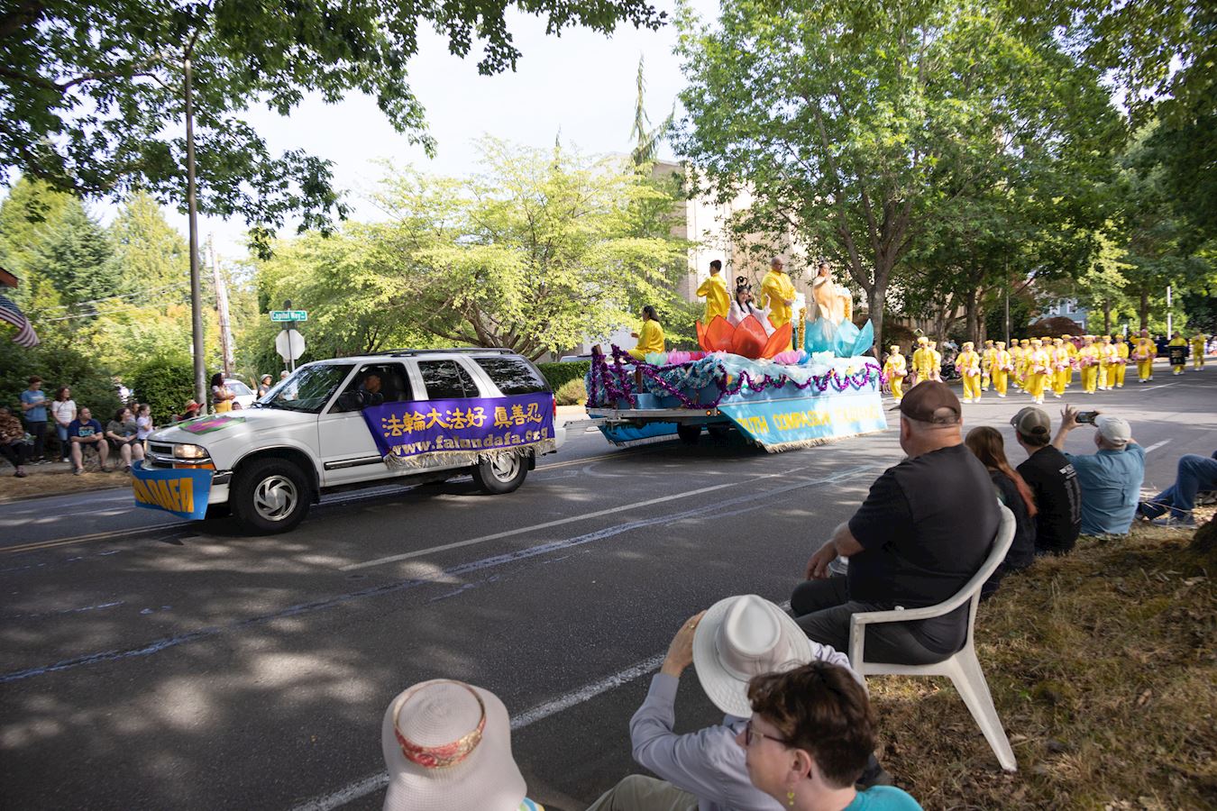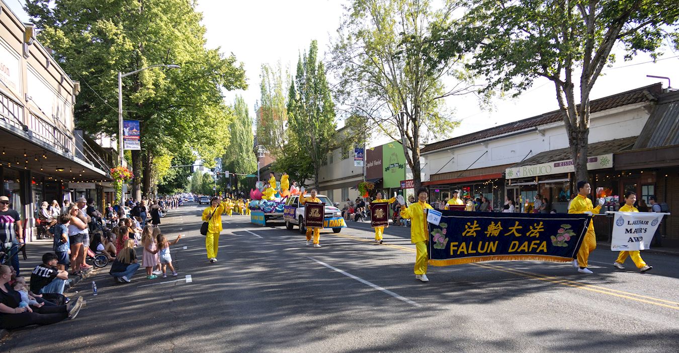 | 【明慧网二零二五年七月二十六日】二零二五年七月十九日,美国华盛顿州的法轮功学员应邀参加了州府奥林匹亚市(City of Olympia)的议会湖庆典(Capital Lakefair)游行。法轮功团体荣获主办方颁发的市长奖(Mayor's Award),及希望法轮功团体明年再参加游行的邀请。 这在中共残酷迫害法轮功团体26年之际,显得格外有意义。一方面,中共在海外散播着弥天大谎诋毁法轮功;另一方面,人们在海外自由的土地上尽情地赞赏和褒奖法轮功团体。 奥林匹亚是美国华盛顿州的首府,位于西雅图以南约60英里处,以其独特的历史魅力、浓厚的艺术氛围而闻名,市中心保留了许多历史建筑。奥林匹亚还拥有美丽的自然风光,周围环绕着森林、国家公园和水域,这是一个兼具政治、文化与自然魅力的城市。 议会湖庆典是奥林匹亚市一年一度的夏季庆典,是在议会湖(Capitol Lake)周边举办的为期五天的节日活动。节日期间有游乐园、美食摊位、音乐演出、手工艺市集和盛大的花车游行。该庆典自一九五七年创立以来,至今已有68年的历史。 法轮功团体荣获“市长奖”  图1:法轮功游行团体荣获主办方颁发的市长奖(Mayor's Award)奖状 |