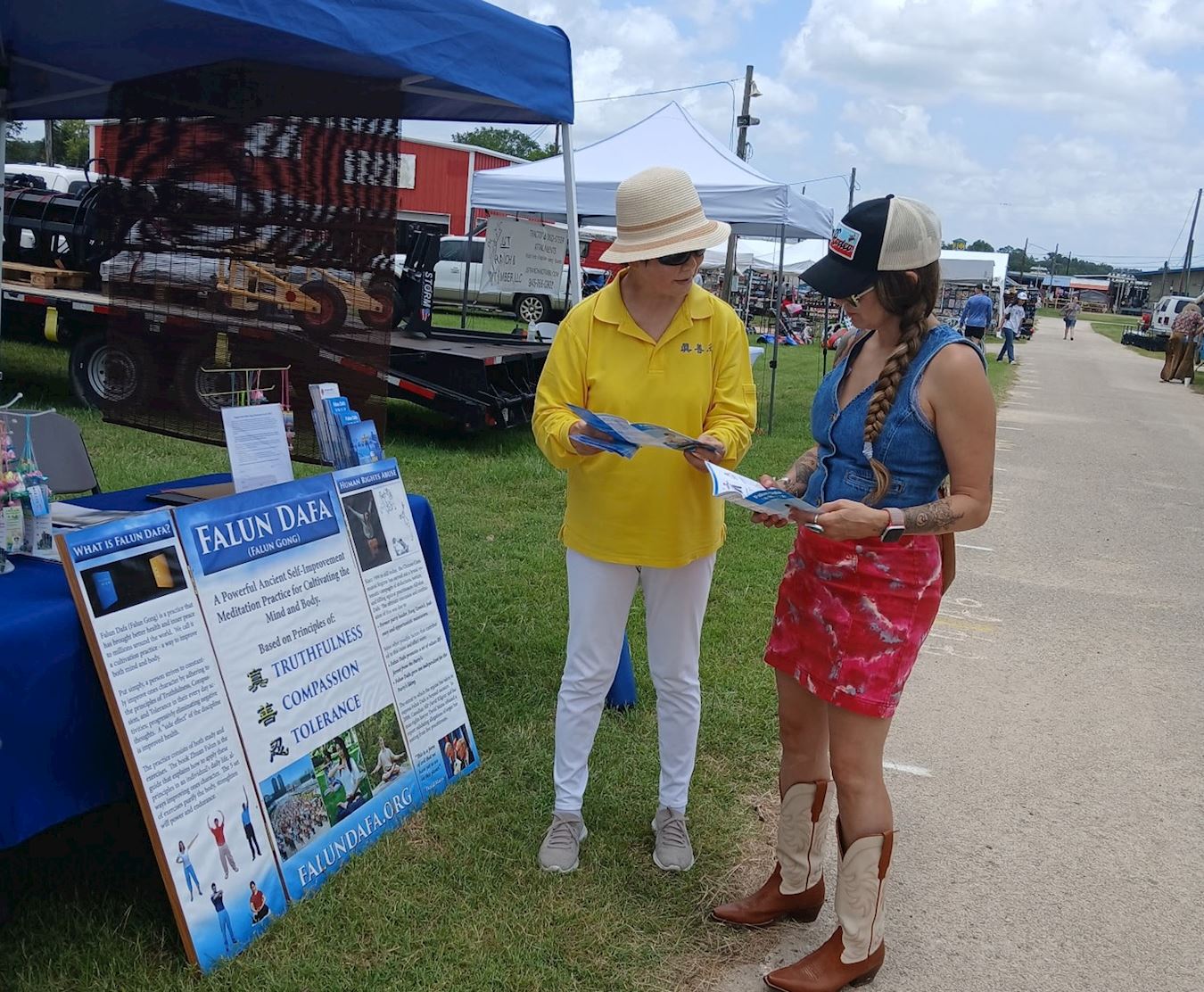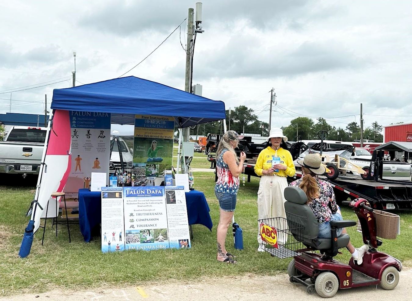 | 【明慧网二零二五年七月八日】(明慧记者曾洪美国达拉斯报道)二零二五年七月三日至七月六日,德克萨斯州达拉斯的部分法轮功学员到达拉斯(Dallas)东部的坎顿市(Canton),参加“首个星期一集市”(First Monday Canton)活动,并在活动中传播大法、揭露中共在中国大陆及海外对法轮功的迫害。 坎通市位于达拉斯市东部六十英里外,这里的“首个星期一集市”可追溯到1850年,是个有着悠久的历史集市,随着时间的流逝,虽然集市已改在每个月的第一个星期四至星期日举行,但仍保留了“星期一”在它的名称里,而且已成为这个地区最大、最有特色的集市,吸引着相邻县、市的人们到此购物。坎顿市称其为世界上最大的集市。  图1~2:达拉斯法轮功学员参加“首个星期一集市”讲真相 |