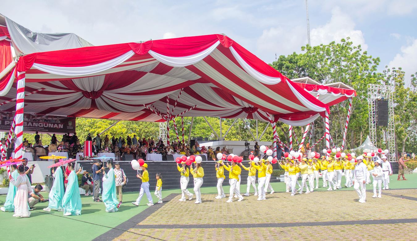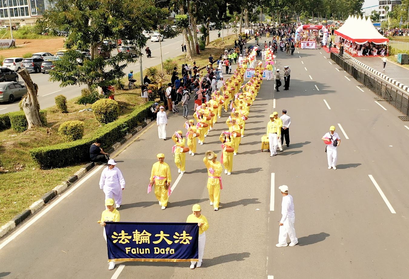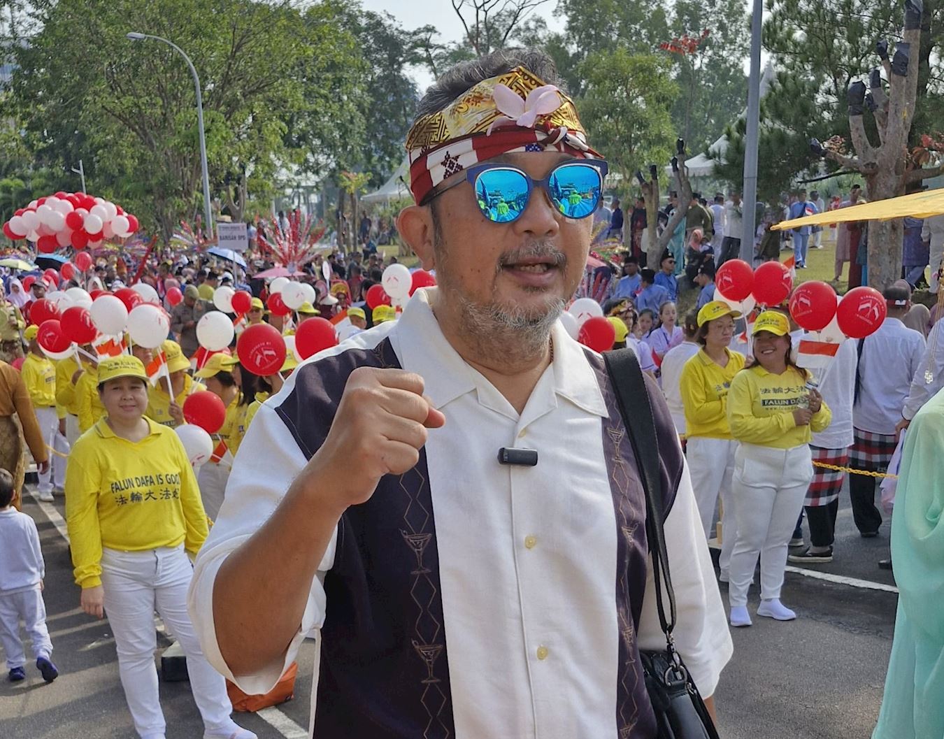| 【明慧网二零二五年八月十五日】为庆祝印尼独立八十周年,巴淡岛(Batam)市政府于二零二五年八月十日在市中心举行了盛大的游行庆祝活动,法轮功团体受邀参加,赢得主办方和各行业民众的欢迎和赞扬。 据游行组委会估计,当天参加和观看此次游行的民众约八千人现场观看了游行活动。早上八点半,巴淡市长阿姆萨卡·阿赫迈德(Amsakar Achmad)和副市长李·克劳迪娅·钱德拉(Li Claudia Chandra)为游行开幕,来自地方政府机构、军事单位和各个社区团体依次行进。法轮功的队伍由腰鼓队打头阵,随后是身着传统东方服饰和手持红白气球及印尼国旗的学员们,他们的音乐祥和悦耳,队形整齐有序,赢得观众的阵阵掌声,许多人拿起相机记录下这珍贵的一幕。  图1~6:来自印尼、新加坡、马来西亚和台湾等地的法轮功学员参加了二零二五年巴淡岛独立日游行。 |
