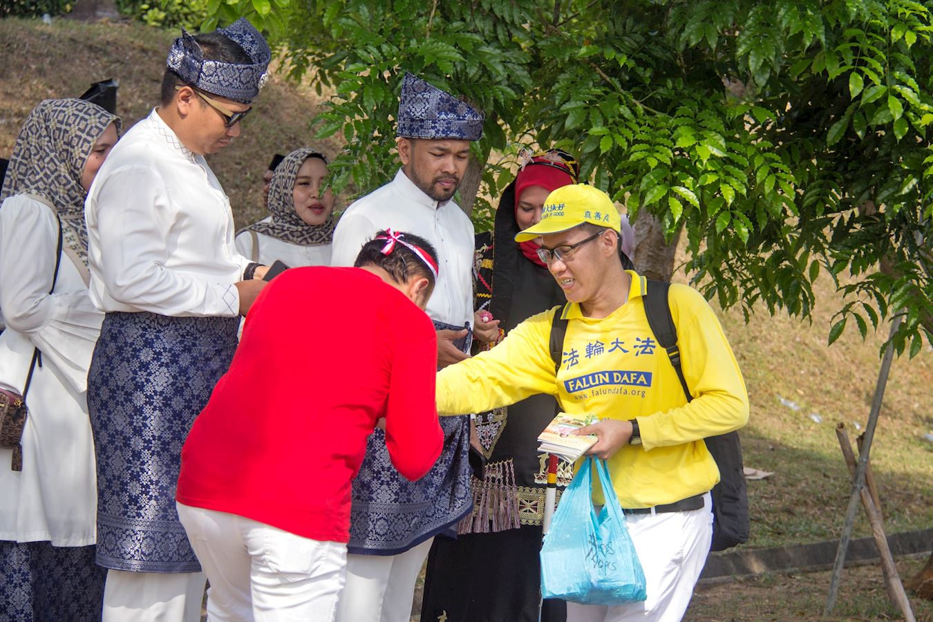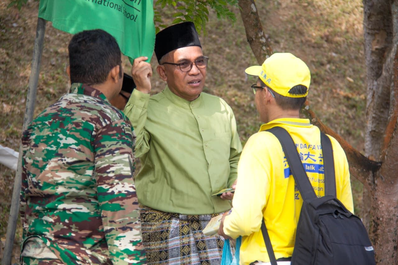 班克桑科(Bank Sampah)是一个倡导环保的社区团体,其发言人尤斯汀(Yustin)也对腰鼓队的出色表现印象深刻,她说:“我们欢迎法轮大法和真善忍。感谢来自马来西亚、新加坡和台湾的学员们参加此次活动。” 游行结束后,巴淡市政府青年与体育部门负责人祖尔卡纳因(Zulkarnain)向法轮大法社团颁发了感谢证书,并与学员们合影留念。  图11:巴淡市政府青年与体育部门负责人祖尔卡纳因(Zulkarnain)向法轮大法社团颁发感谢信。 |