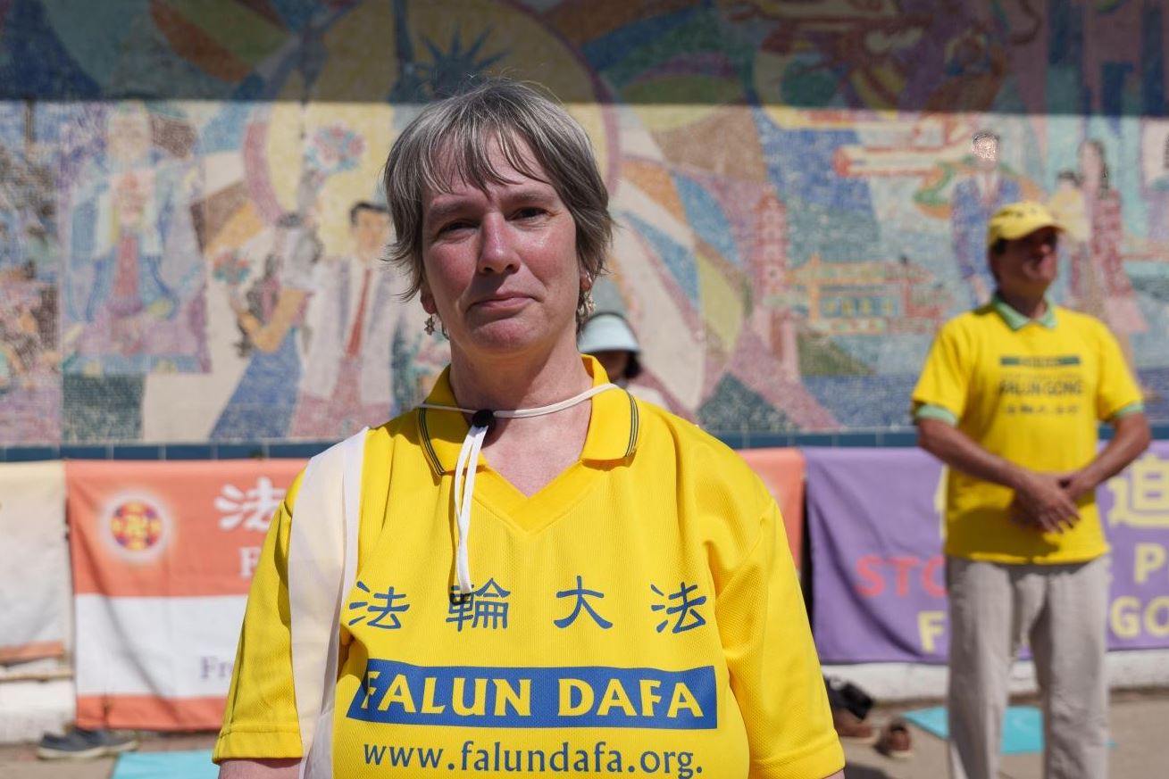 西人学员:希望人们了解真相 密苏里州的法轮功学员芭芭拉(Barbara)于二零零零年开始修炼法轮功,修炼前她得了红斑狼疮多年,也残疾了近十年左右。那时的她觉得“自己的生命好象快要走到尽头”,迷茫和绝望的她一直在寻找生命的意义。 芭芭拉说:“当我在图书馆看到印着‘真、善、忍’三个字的法轮功传单时,我当时就很笃定(这是真理)。”她说,“我只是想要学炼,我并不知道自己能否康复,但是奇迹很快就发生了。” 在芭芭拉开始修炼法轮功以后大概仅仅三周的时间,身体就康复了。芭芭拉说:“我的医生们很震惊,但是他们很确定地告诉我,我的身体没有问题,虽然他们也不知道发生了什么。社会福利保障部门也很惊讶,因为从来没有人象我这样主动要求停掉残疾补助。这就是我修炼法轮大法的开始。”  图8:芭芭拉说:“我们要持续不断地讲真相。” |