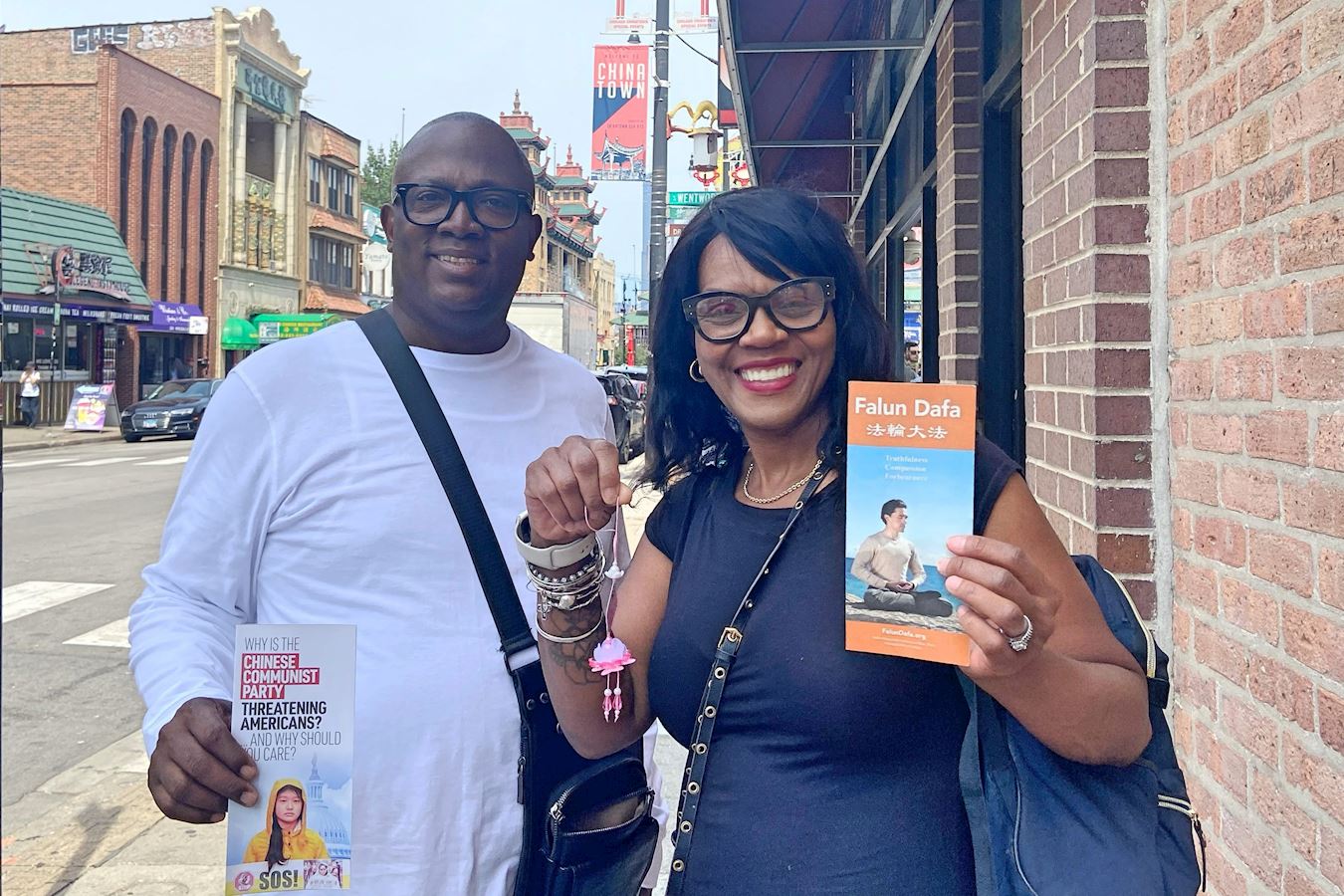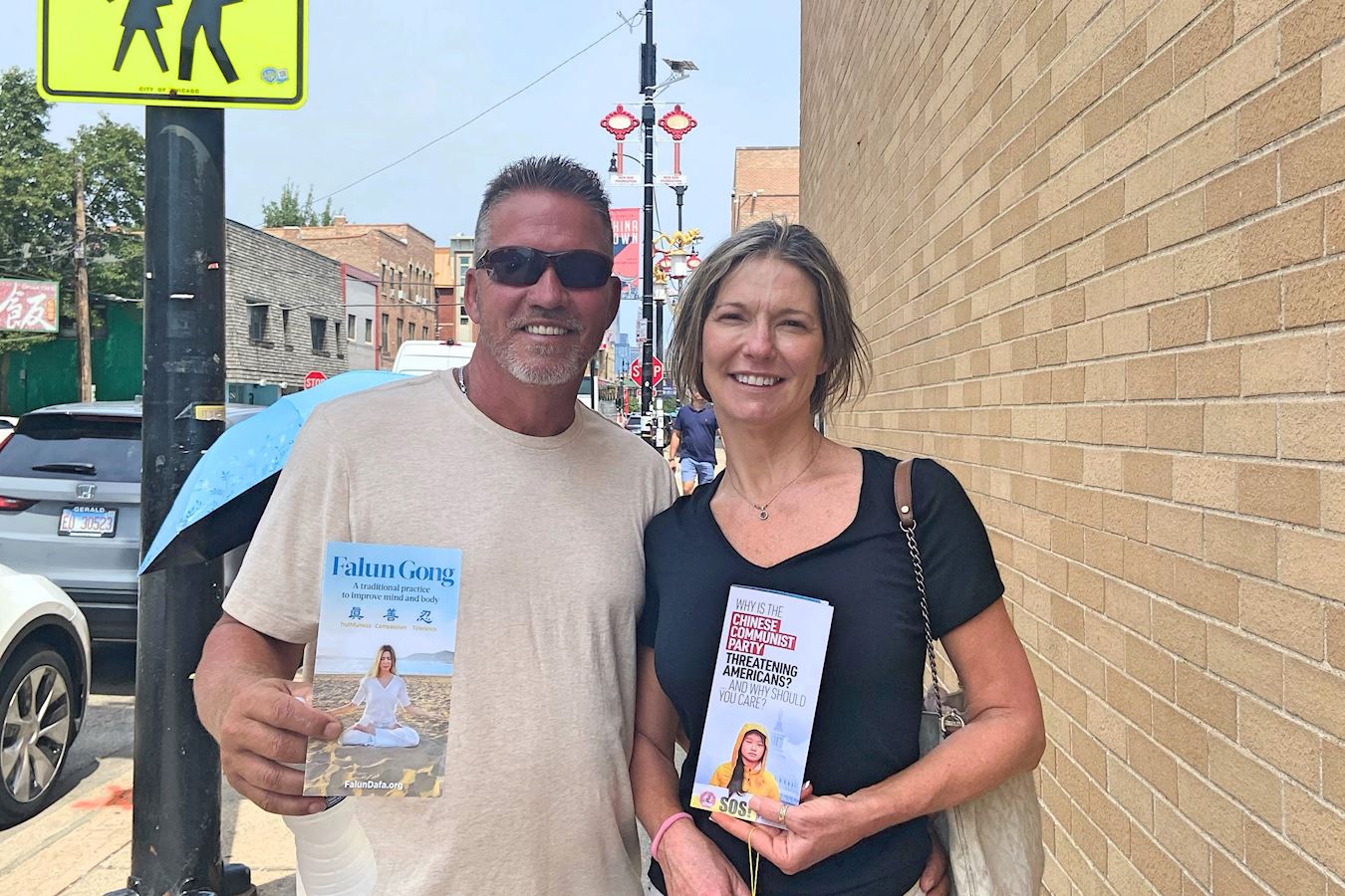 对于中共利用美国的媒体对法轮功进行跨国镇压,吉姆认为,美国的个别媒体被利用,使用了中共一言堂的报道,传播了歪曲事实的信息,影响是恶劣的。我们应对中共跨国镇压的方法就是更加主动地向人们揭露真相。 吉姆说:“美国众议院一致通过的《法轮功保护法案》和《停止强摘器官法案》,就是对参与活摘器官的人实施制裁,而不是象征性举措。在本地,我们也在向本地的报纸投稿,让更多人了解迫害的真相。尤其是现在,越来越多的人知道、谈论中共的跨国镇压,这是非常重要的。” 中共的跨国镇压损害海外华人的声誉 法轮功学员王先生是一位软件工程师,曾在内布拉斯加大学攻读博士学位。二零一九年,他曾亲身经历了一次中共跨国镇压事件。 当年秋天,王先生代表学校的法轮功之友俱乐部参加了学校盛大举办的名为Big Red Street Festival 嘉年华迎新活动。但在活动中,一群中国学生在一位中年女士的带领下,聚集到他们的展位前,展开了巨大的中共国旗,把他们的展位完全挡住。 王先生表示,虽然没有发生肢体冲突,但是他们对法轮功学员大声吼叫,充满敌意,即便学校工作人员多次干预,他们也只是象征性后退几步,直到警察介入后他们才保持一定距离让路人和学生能够通过。 王先生表示这件事情的影响非常恶劣,不仅针对的是法轮功这样的被迫害群体,也损害了华人的声誉。他说:“这件事情让我意识到,即使是在美国中部,象内布拉斯加州这样偏远的地方,中共都在渗透。可是这里的居民大都是基督徒,社会环境是非常祥和的,他们几乎是没有见到过这样激烈的事件。今年五月底,内布拉斯加州的州议会就通过了打击跨国镇压的法案和防止外国对手与恐怖分子代理人注册法案,法案中特别提到了中(共)国。” 民众称赞真、善、忍值得学习  图10:卡曼·考克斯和太太很高兴有此机会了解到法轮大法。 |