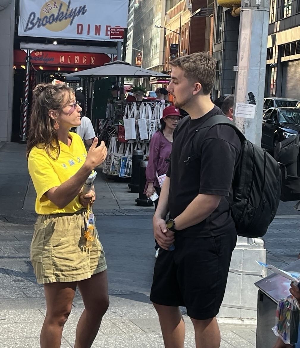 西人学员玛丽(Marie)说:“这是纽约美好的一天,在这个商业之都,我们展示法轮功大法,美好的原则‘真、善、忍’在世界各地历史上都享有盛名,这些价值观源远流长。” 下午5点左右,活动在众多支持与赞许声中圆满结束。许多观看者纷纷表示,这份祥和力量让他们印象深刻,也更加理解真、善、忍的美好。
