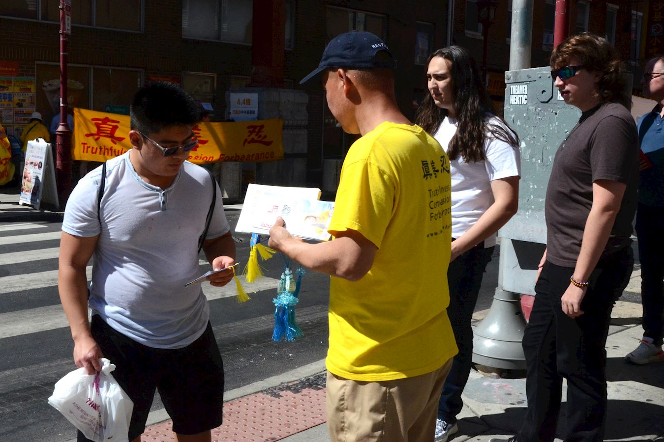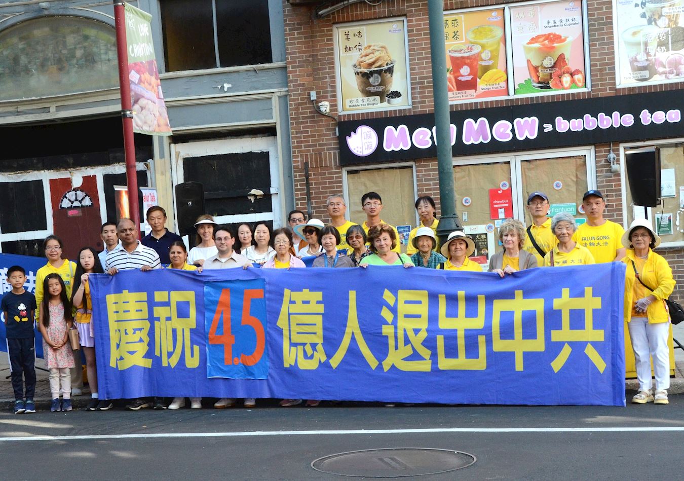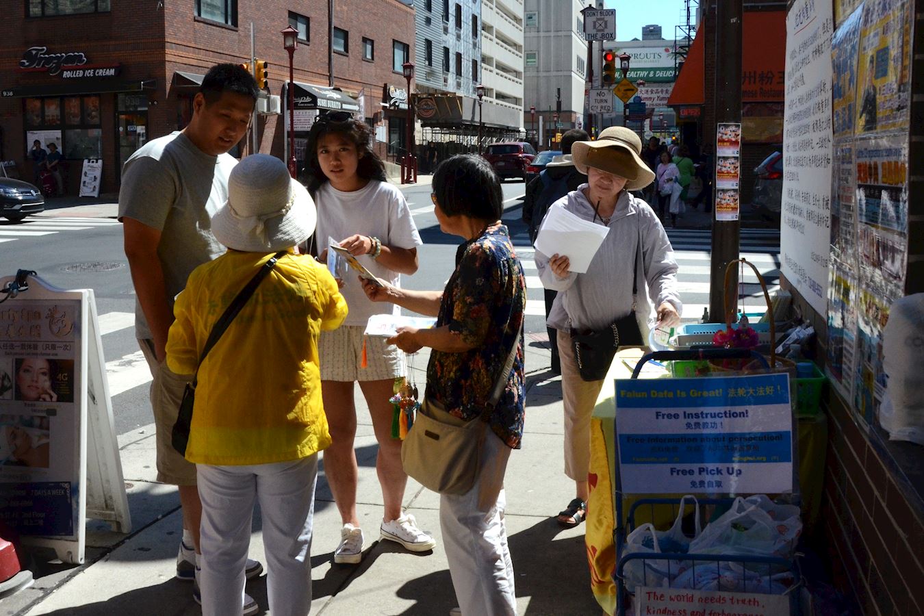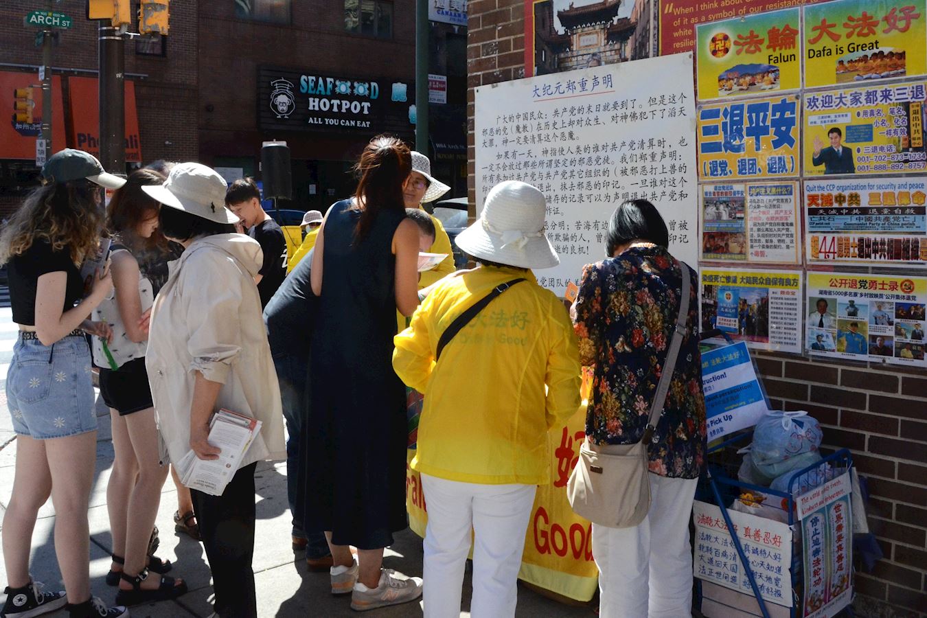 | 【明慧网二零二五年九月二日】二零二五年八月三十日,美国大费城地区部分法轮功学员在费城唐人街举办集会,声援四亿五千万中国人三:退.(退出中共的党、团、队组织)。宾州众议院和费城市议会颁发褒奖。 在集会上,法轮功学员以横幅、分发传单、征 集签名、演讲等形式向路人介绍三:退.活动,呼吁民众关注中共的人权暴行,包括活摘法轮功学员器官的迫害。 :退.集会'> 图1~5:二零二五年八月三十日,法轮功学员在费城唐人街举办声援四亿五千万中国人三:退.集会 |