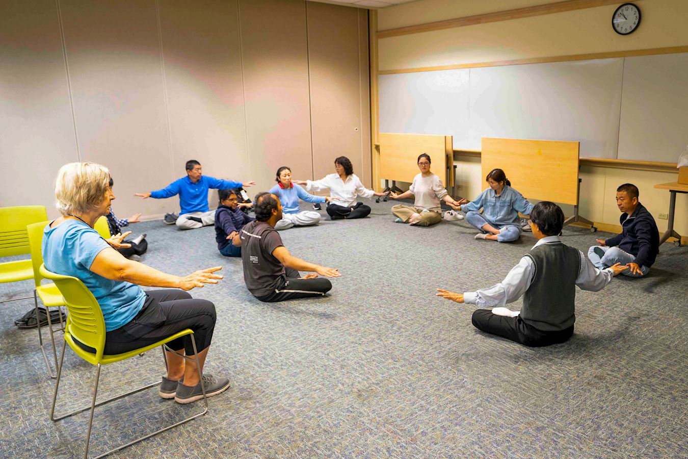 硅谷电脑工程师乾丹(Chandan)表示,他是在一个活动上获得了教功班的消息,所以他当天就来学功了。 学完功法后,他说,“这个教功班很好,让我找到了内在的能量,我感觉良好。我会继续修炼,进一步探索法轮大法。” 他认为,修炼可以去掉自身的业力,“我们应该做到真,善待他人,宽容别人。” 他表示,他将继续修炼下去。 西人新学员:喜欢真、善、忍 西人新学员玛丽(Mary)表示,她的腿受伤了,因此很难象其他学员那样打坐。谈到法轮功教功班,她说,“对我来说,这个教功班很有趣。这个功法很好,对我很有用,我会去公园参加集体炼功。” “我喜欢真、善、忍,”她说,“但你要遵循这个原则,按照这个原则去做。如果每个人都遵循真、善、忍,就不需要任何宗教了。” 朱女士:感觉整个人都通透了 很舒服  图9:朱女士表示,下次再有教功班,她还会再来。 |