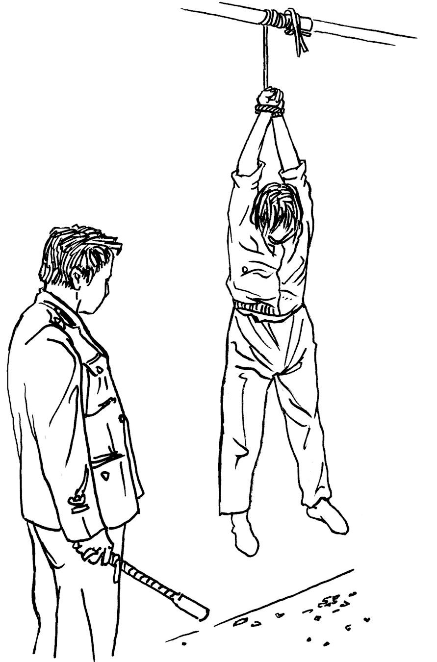 二零零七年十月中共开十七大,严玲被绑架到洗脑班关押迫害五十天。在桃花源饭店,警察用绳子将她戴的手铐向下吊,头向后仰,她被吊了六个多小时,胃里的东西被折磨得全都吐出,结果绳子都断掉了。 二零一四年四月,严玲因讲法轮功真相,被非法关押在看守所迫害十二天。 二零一五年二月十一日,严玲被南通市公安局通州分局国保大队、派出所跟踪、绑架,并被非法拘留十五天。 在这几年的连续迫害期间,严玲还被监视居住在桃花源饭店、四季宾馆、华德宾馆、基础个工程公司招待所、红十字会等地,封闭性迫害,受到非人的折磨。 在江苏省女子劳教所遭受迫害 二零零四年十二月五日,严玲被劫持到江苏省女子劳教所(句东女子劳教所)非法劳教一年,由于她拒绝“转化”,又被加期迫害四个月。 严玲一到劳教所,就被单独关押,靠墙壁被罚站、七天七夜不准睡觉、不准大小便;五个吸毒犯围打她,有拽头发的,有用巴掌搧嘴巴的,有用拳头打胸前的,有在后面薅脖子的,有用脚踢屁股、踢小腿的,她嘴里的牙也被打掉了一颗。  中共酷刑示意图:殴打、撞头 |